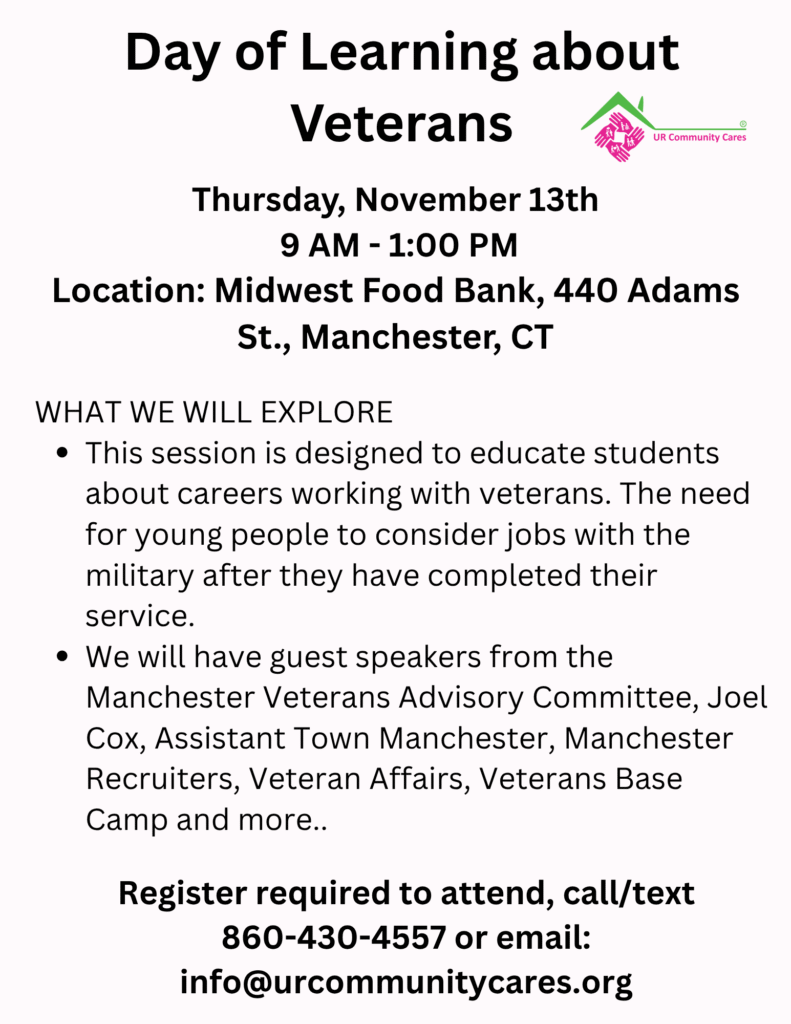 Hard of Hearing Community Discussion Please join UR Community Cares in person or on Zoom. Date: Tuesday, Nov. 18th Time: 1-2:30pm In-Person Location: 153 Spruce Street, Manchester, CT If you can not join us in person, we will email you the Zoom meeting link once you have completed this form: https://forms.gle/RLbwNR2rDv1AhC3bA |