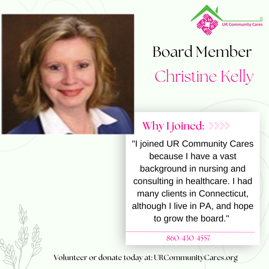 Chris joined the URCC Board in 2022, after caring for her parents at home, in the hopes of helping to support aging citizens to maintain their health, dignity and independence in their own home. Chris currently resides with her husband outside Philadelphia in West Chester, Pennsylvania.