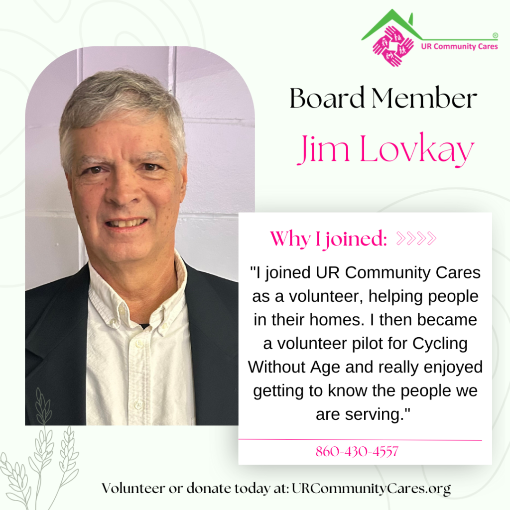 Jim’s commitment to URCC continued to grow, leading him to play a pivotal role in fundraising initiatives to support the organization’s mission. In his pursuit of new ways to connect with the community, Jim also became involved with the Cycling Without Age program, where he earned his pilot’s license for a rickshaw, giving seniors in the community the opportunity to enjoy the outdoors and the mobility of cycling.