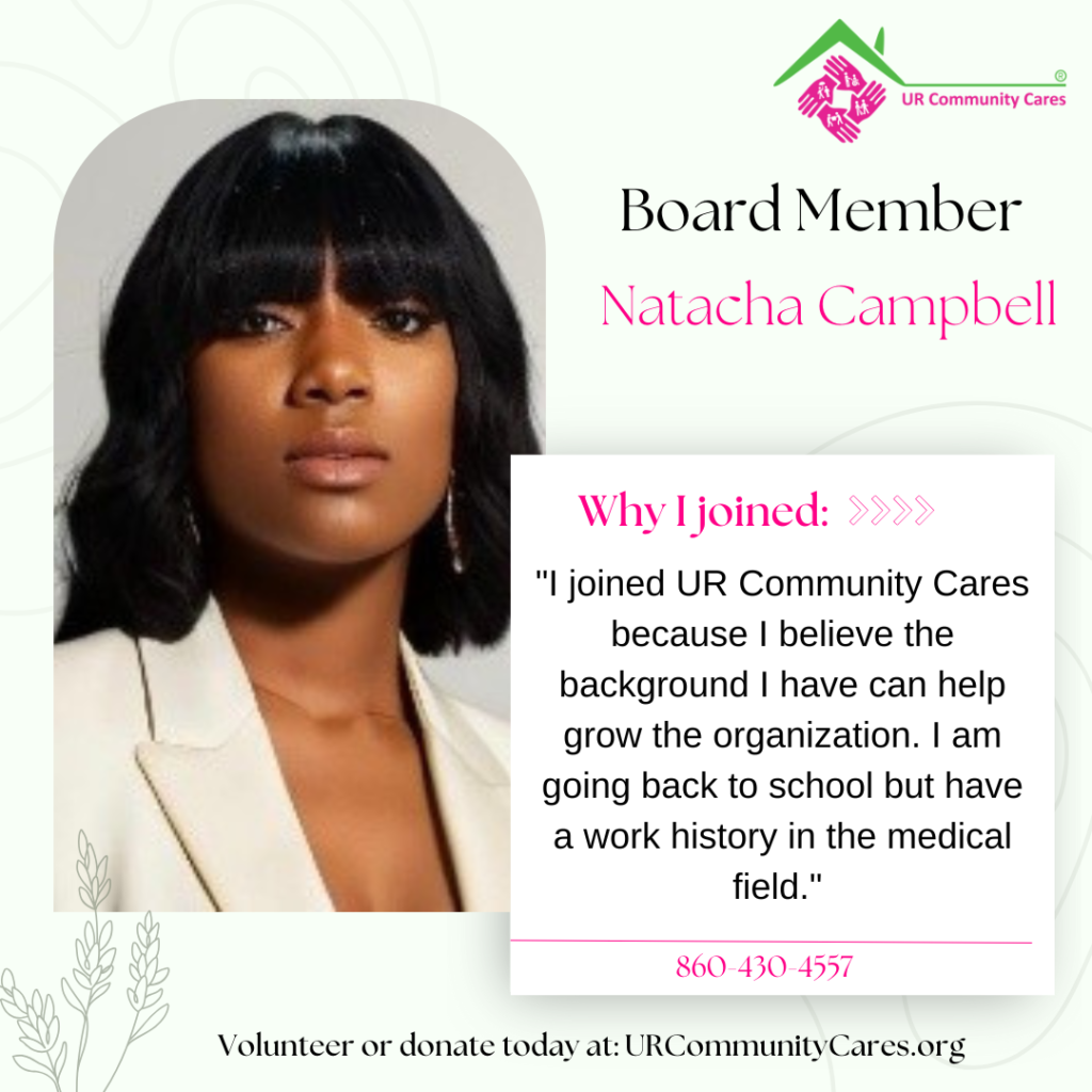 Her combined experience in healthcare operations, direct patient care, and mentorship aligns seamlessly with UR Community Cares’ mission to help older adults and individuals with disabilities remain safe, independent, and connected within their communities. Natacha is dedicated to using her expertise to strengthen the organization’s vision of building compassionate, inclusive neighborhoods across Connecticut.